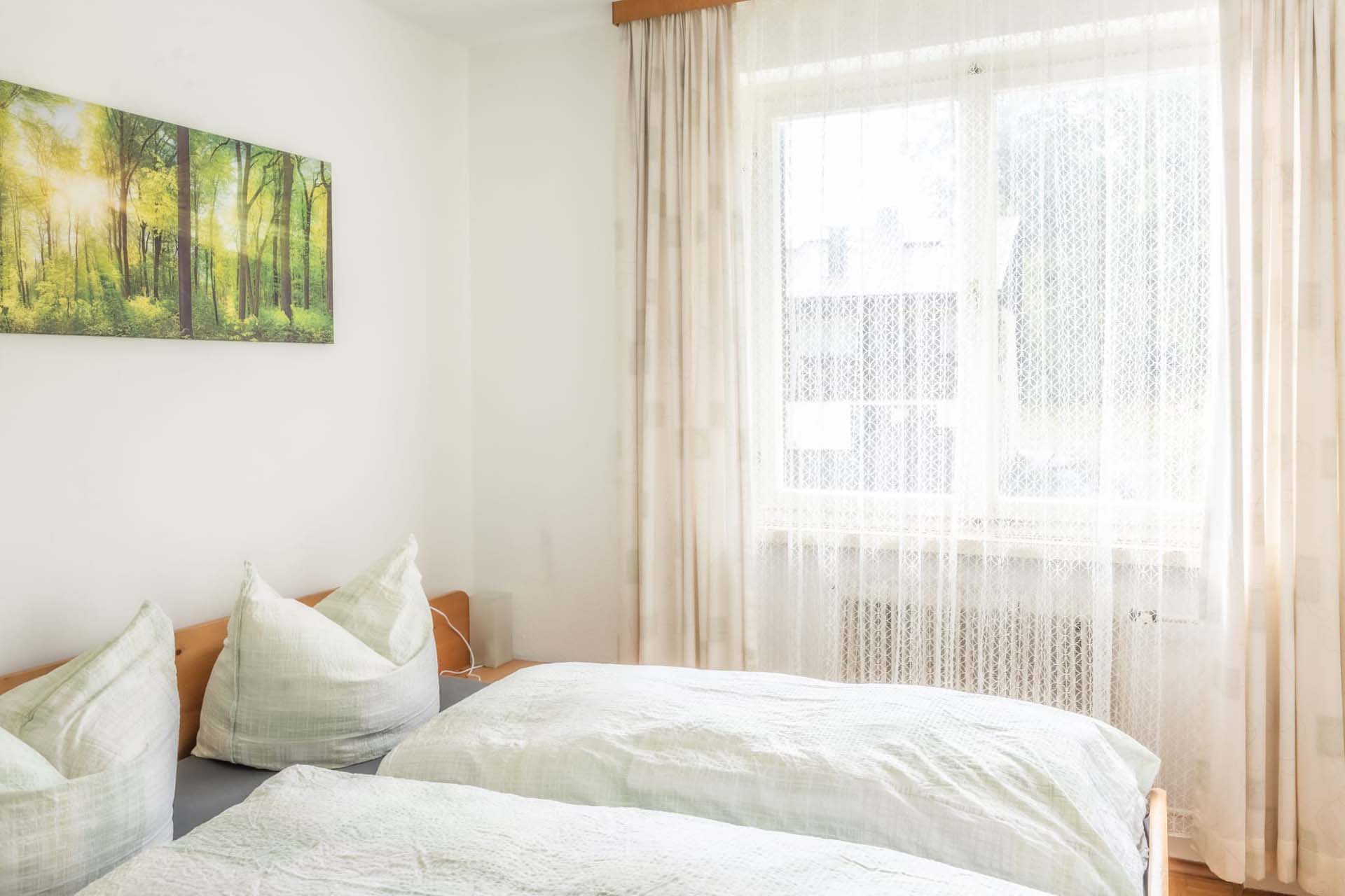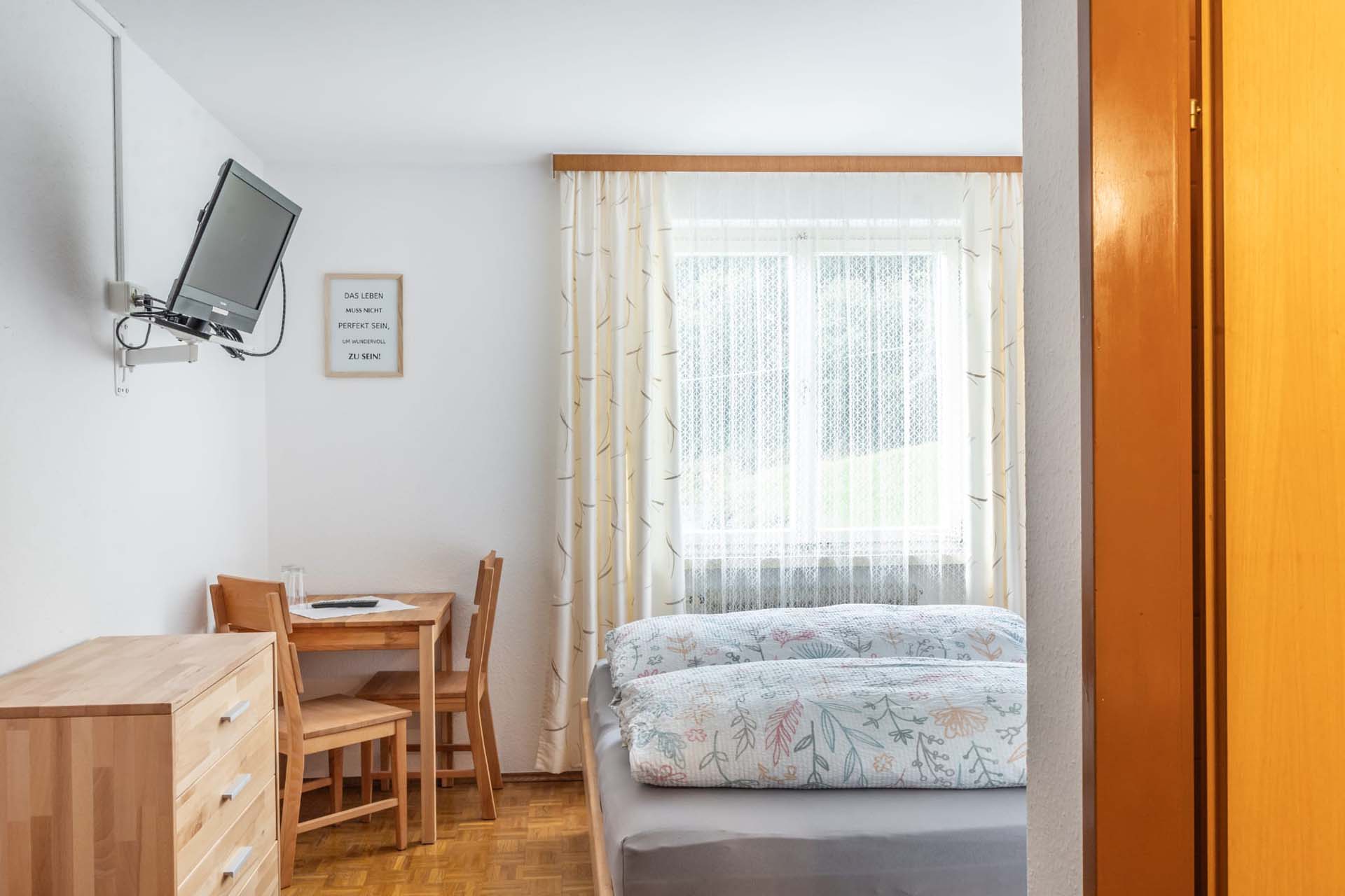 Gemütliche Zimmer in der Frühstückspension Stein in Göfis: Komfortable Betten, eigenes Bad, TV und reichhaltiges Frühstück ab 6 Uhr.